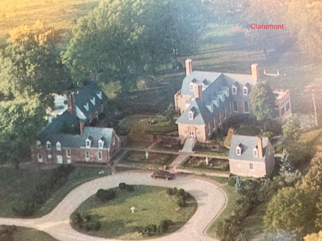 Claremont Manor is an 1,100 acre estate situated on the right bank of the James River about 30 miles southeast of Richmond. A beautiful Georgian manor house sits on the property along with several outbuildings in the same style. Extensive gardens surround the main house which overlooks the James River. The origins of Claremont Manor date back to the 1620s when George Harrison, one of the Jamestown settlers, established a small tobacco plantation on the site. Mr. Harrison died in 1623, the victim of the first recorded duel in Virginia. The estate passed to the Clement family and then to the Allen family in 1681. The Allens built the manor house that exists today in 1750. At one time, the estate amounted to 12,000 acres and was a significant agricultural supplier to the confederacy during the Civil War. However, being on the losing side didn’t work out for the Allens. After the war, their Confederate currency worthless, they were forced to parcel out Claremont (much of it to migrating yankees). The last Allen threw in the towel in 1886 and moved to New York to practice law bringing 205 years of family ownership to an end..