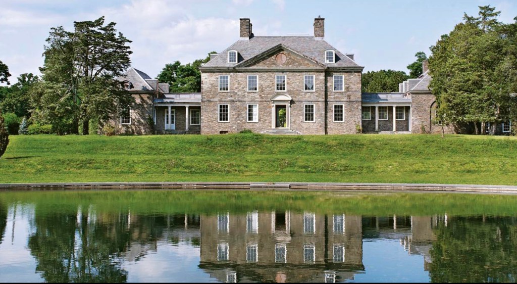 This beautiful Palladian/Georgian-revival house is known as Marienruh (MARY-en-roo). It is sited on a 100 acre estate north of the bucolic village of Rhinebeck, NY overlooking the Hudson River. It was designed by the gilded age architect Mott Schmidt and completed in 1926. The house was a wedding present from Vincent Astor to his sister, Ava Alice Muriel Astor (who went by Alice), and her new husband, Prince Serge Obolensky. Alice was the great great granddaughter of John Jacob Astor. Astor was the first American multi-millionaire (tens of billions in today’s money) who grew rich in the early 19th century fur trade, with his agents often trading liquor to the natives for furs. Blessed with amazing foresight, Astor plowed his fur profits into Manhattan real estate (mostly woods and farms back then) and became even wealthier as these lots were converted into tenements housing the immigrants that flooded into New York City during the 19th century. On his deathbed, Astor’s only regret was that he hadn’t bought up even more of Manhattan Island. His descendants were prominent members of New York City society during the 19th and 20th century. In the early 1890s, as a result of a feud between two of the female Astors over who was more important socially, a branch of the Astor family decamped to England and has been turning out aristocrats and prominent politicians in the UK ever since. The American branch of the Astor family, in contrast, has faded into relative (but comfortable) obscurity.