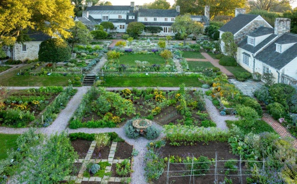 Oak Spring was a five decade labor of love for Rachel Lambert “Bunny” Mellon and her husband Paul Mellon. Bunny’s family had made their fortune by starting Warner-Lambert, a New Jersey pharmaceutical company best know for Listerine mouthwash. Paul Mellon was a member of Pittsburgh’s Mellon family, one of the wealthiest and most influential gilded age industrial dynasties in U.S. history. During his life, Paul was the largest benefactor of art, time and money to the National Gallery in Washington D.C. and he had a knack for raising race horses. Starting in the late 1940s, the Mellons developed Oak Spring Farm near Upperville in Virginia’s hunt country into a world class thoroughbred breeding operation and garden that also included a private airstrip to more conveniently jet off to their homes in the Caribbean, NYC, Nantucket and Paris. Bunny had no formal training in landscape architecture but nevertheless became a sought after authority on the subject and her commissions included the White House rose gardens which she designed for her friend, First Lady Jackie Kennedy. After Bunny passed away in 2014, Oak Spring Farm was turned into a foundation and retreat for visiting writers, artists, landscape architects and researchers. It is not open to the public. For more on Oak Spring, click here.