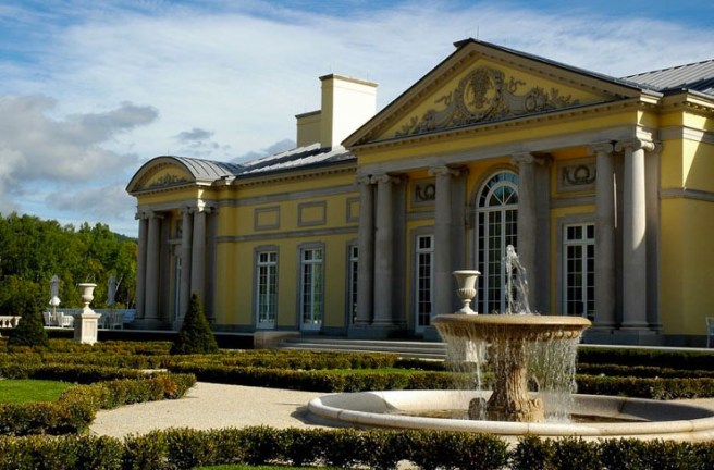 This 70,000 square foot house is called Cherlieu and sits on a vast private estate in the Laurentian mountains of Quebec called Domaine Sagard. Domaine Sagard is approximately 100 miles north of Quebec City and covers 21,000 acres. The palladian palace of Cherlieu was completed in 1997 to a design by Quebec City architect, Sylvain Larouche. Domaine Sagard is the creation of Paul Desmarais, the founder of the Montreal-based Power Corporation of Canada.