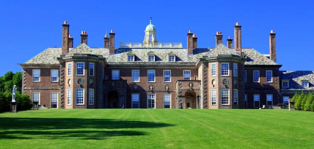 The house that would eventually become today’s Staatsburgh was built in 1833 by Morgan Lewis and his wife Gertrude Livingston who was a daughter of Margaret Beekman and Judge Livingston of Clermont. Morgan’s father had been a signer of the Declaration of Independence and Morgan himself was the third Governor of New York State as well as a State legislator. The Lewis/Livingstons had originally bought the 334 acre estate in 1792 and built a colonial style house on the site. This first house was destroyed in 1832 in a fire deliberately set by a disgruntled tenant farmer and rebuilt in a greek revival style. Three generations of Livingstons later, Ruth Livingston and her husband, Ogden Mills, hired architects McKim, Mead and White to remodel and enlarge Staatsburgh in 1896 by essentially building the Beaux-Arts mansion that stands there today over and around the existing house. The Mills’ also had homes in California (where Ogden’s father made his fortune in the gold fields), Paris, New York City and Newport, Rhode Island. Staatsburgh was just their weekend place while they were staying in the City. Their son, Ogden Livingston Mills, inherited Staatsburgh in 1929. Ogden Jr. was the U.S. Secretary of the Treasury when the Great Depression started and he convinced President Herbert Hoover to respond with tax increases and fiscal austerity which, as it turned out, made the depression even worse. Ogden’s sister, Gladys Mills Phipps, inherited Staatsburgh in 1937 but soon afterwards donated the estate, since expanded to 1,600 acres, to the State of New York for use as a state park. Unfortunately, the State failed to properly maintain Staatsburgh and the house deteriorated over the ensuing decades. It wasn’t until just recently that a concerted effort was made to try and rehabilitate the house. Part of the problem is that the 1896 construction was done in a very slipshod manner and the consequences have magnified over the years. Staatsburgh is open to the public and while the exterior of the house is in marginal condition the interior rooms are extravagantly furnished and show the house in all of its gilded age glory. For more information on Staatsburgh including how to visit, click here. Another house designed by McKim, Mead and White is a few miles south in Hyde Park, the Vanderbilt mansion – click here for more.